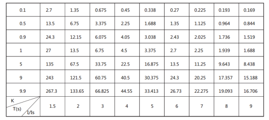 2、反時(shí)限特性曲線K值整定:K值整定開關(guān)為最左第三組撥碼開關(guān)(共二個(gè)),左邊一個(gè)為表示1級(jí);右邊一個(gè)表示0.1級(jí)。本產(chǎn)品K值整定范圍為0.1~9.9,(舉例)比如其值設(shè)定為5.0,過流動(dòng)作值設(shè)定為5.0,輸入實(shí)際電流為30A時(shí)那么它的延時(shí)時(shí)間為13.5秒,但其速斷倍數(shù)值應(yīng)設(shè)定為3。