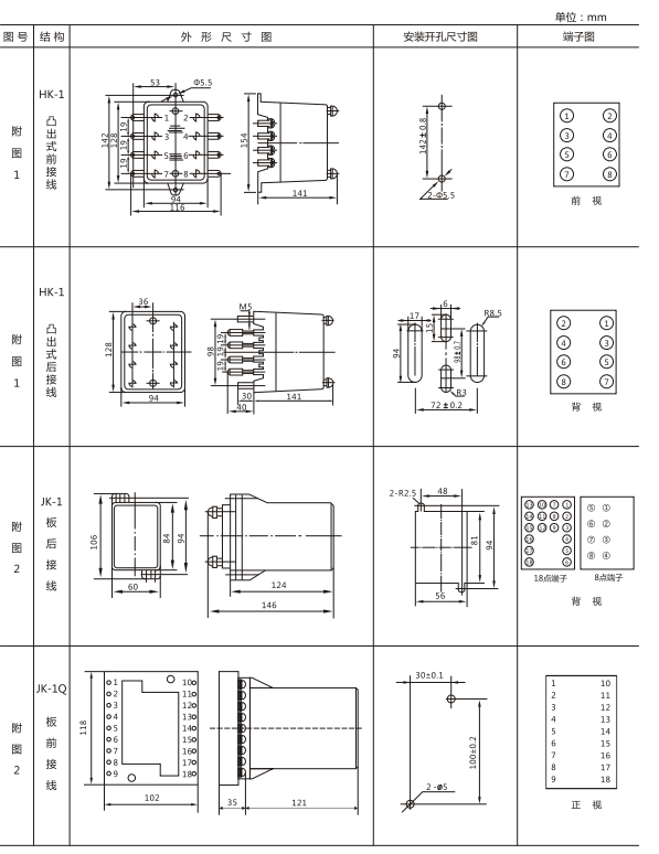 JY-ZA直流高低值電壓繼電器外形及開孔尺寸