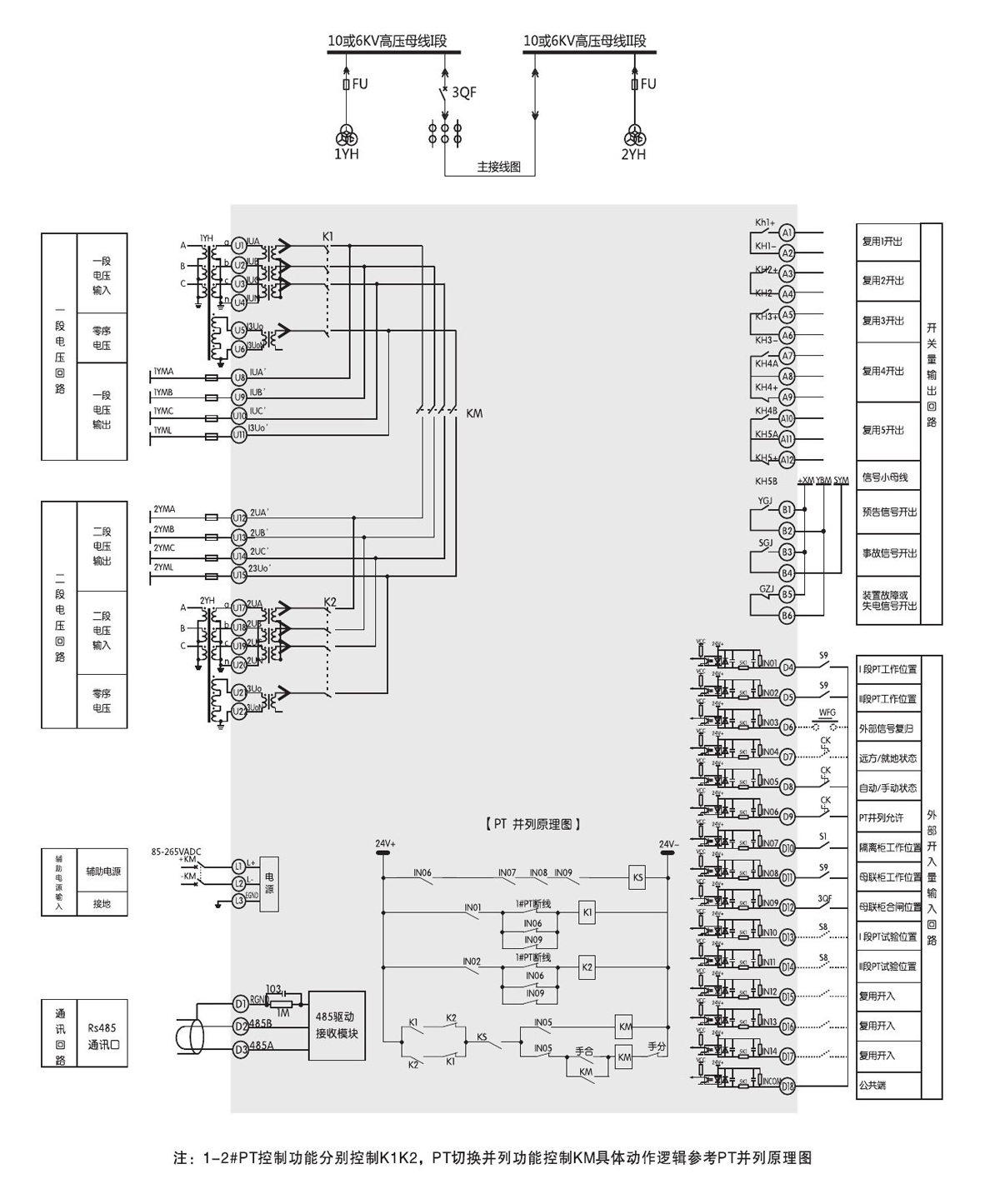 ■集保護(hù)、測(cè)量、監(jiān)視、控制、人機(jī)接口、通信等多種功能于一-體; 專門針對(duì)開關(guān)柜進(jìn)行“單元化”設(shè)計(jì),一 臺(tái)裝置即可完成開關(guān)柜內(nèi)電壓互感器的自動(dòng)化功能,簡(jiǎn)化了開關(guān)柜次設(shè)計(jì)和施工,代替了各種常規(guī)繼電器和測(cè)量?jī)x表,節(jié)省了大量的安裝空間和控制電纜。