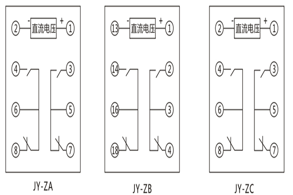 JY-ZA直流高低值電壓繼電器內(nèi)部接線(xiàn)及外引接線(xiàn)圖: